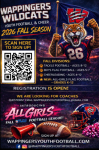 Fall Flag NFL Style! It’s official! The Wappingers Wildcats has partnered with NFL Flag for the Fall 2025 season! Boys and girls ages 5-7 years old from Wappingers Falls and its surrounding areas can now officially play like the pros in the Fall! What a wonderful opportunity for our youngest youth football athletes to participate…